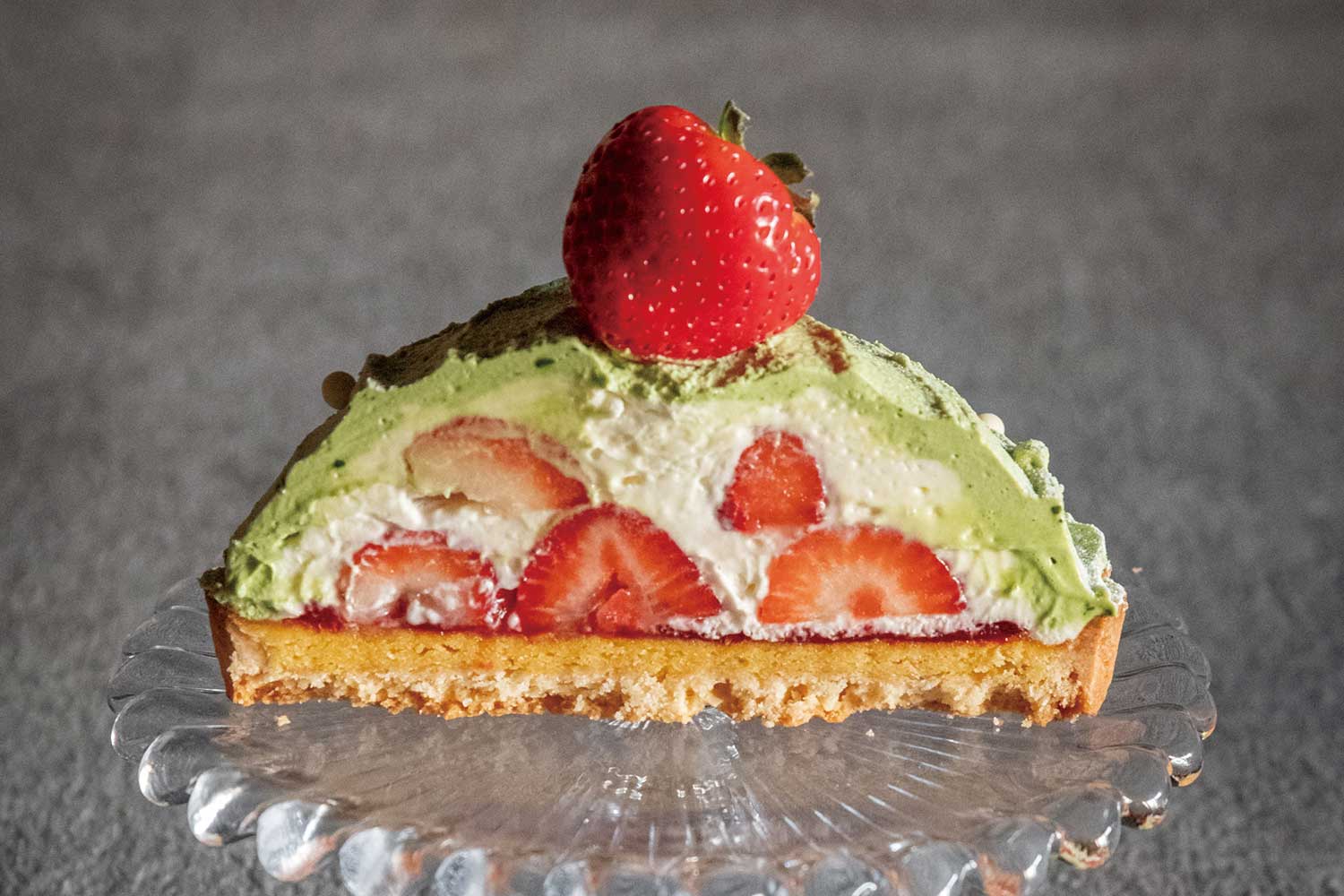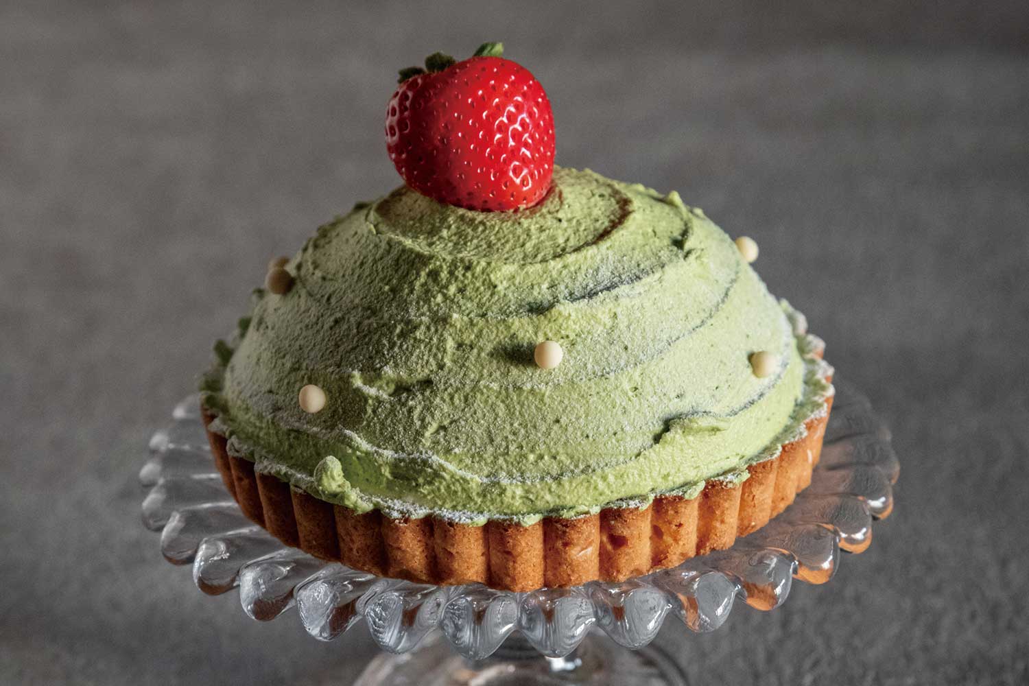 クリスマスリースをイメージしたドームタルト。中にはゴロゴロ苺が詰まっています。