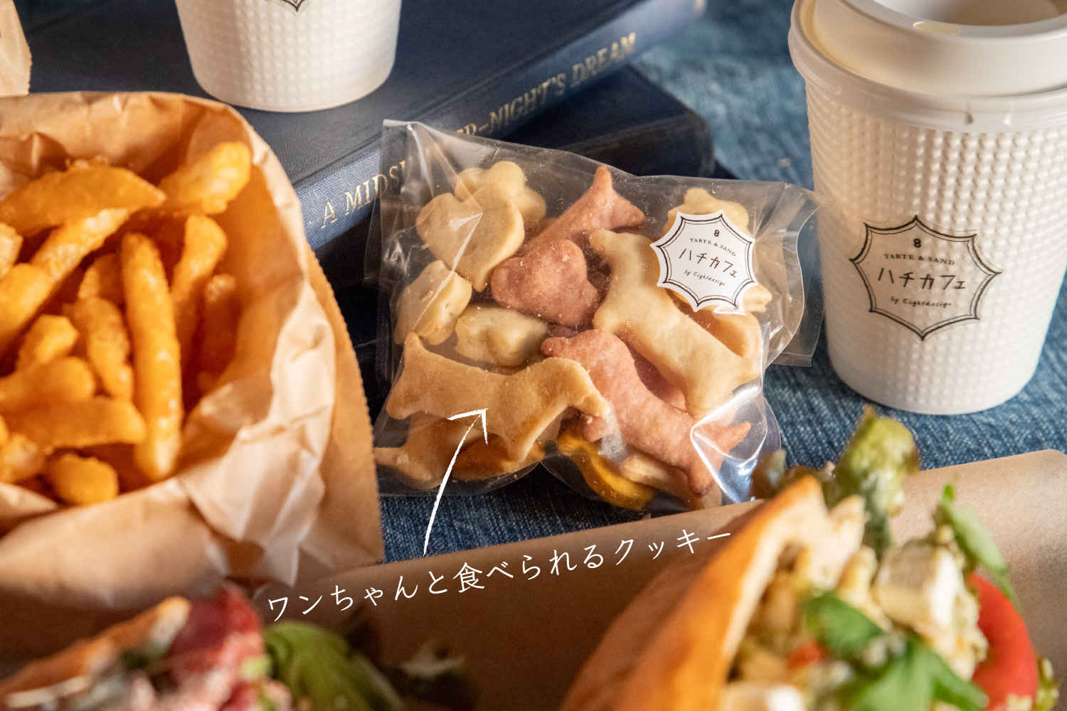 内容:ハーフサンドイッチ×2、お好きなドリンク×2、ポテト×2、ワンコと食べられるクッキー×1