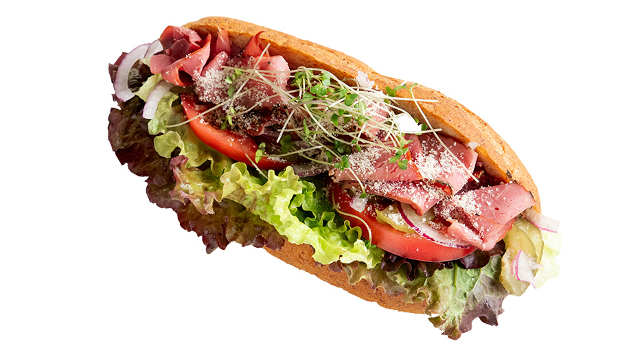 店内の工房で焼き上げた自家製パンのサンドイッチ。