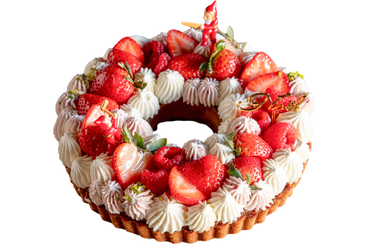 赤い実のノエルリースタルト- たっぷりの苺と2種類のクリームでデコレーションした、毎年人気の苺のリースタルトです。(写真は18cmです)