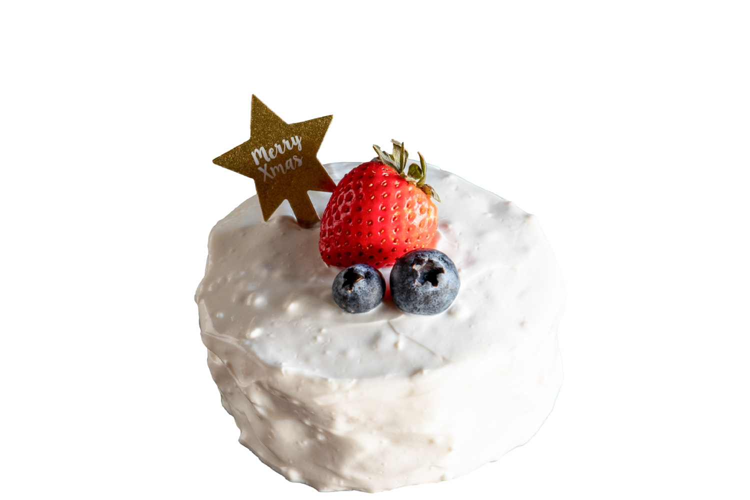 - ワンちゃんと一緒に楽しめる、砂糖不使用の甘くない苺のショートケーキ。